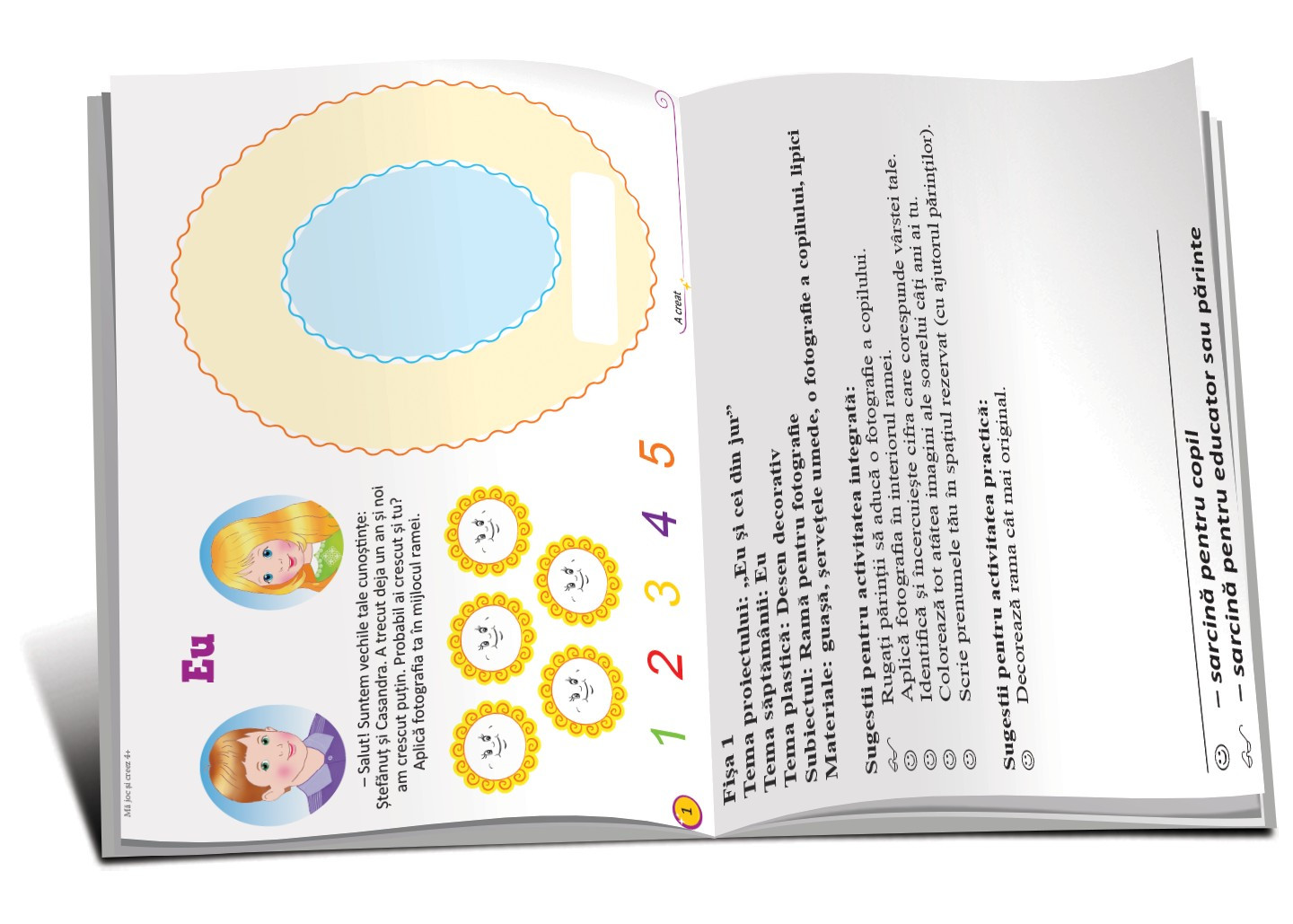 Caietul conține activități la educația plastică , dezvoltăm logica și memoria Coperta cartonatădimensiune 20.5×29 cmconține 32 de pagini